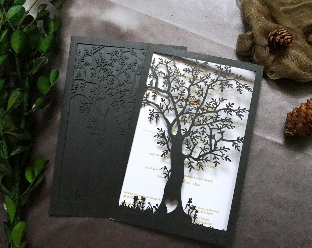 10Pcs Tree Luxury Pearl Paper Laser Cut Wedding Invitations, Elegant Lace Engagement Cards, Personalized Bridal Shower Greeting Cards, Romantic Party Supplies