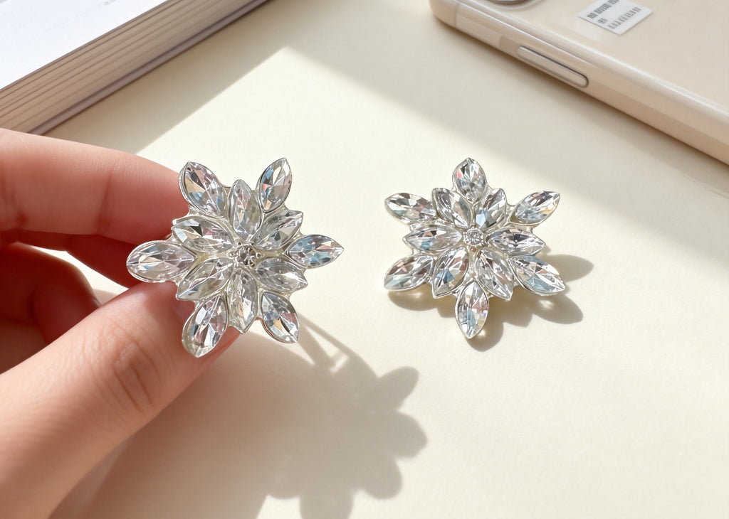 10pieces Snowflake Decoration Rhinestone Buttons,Accessories Girl DIY Handmade Hair Buttons,Decorated Decoration Party Favors