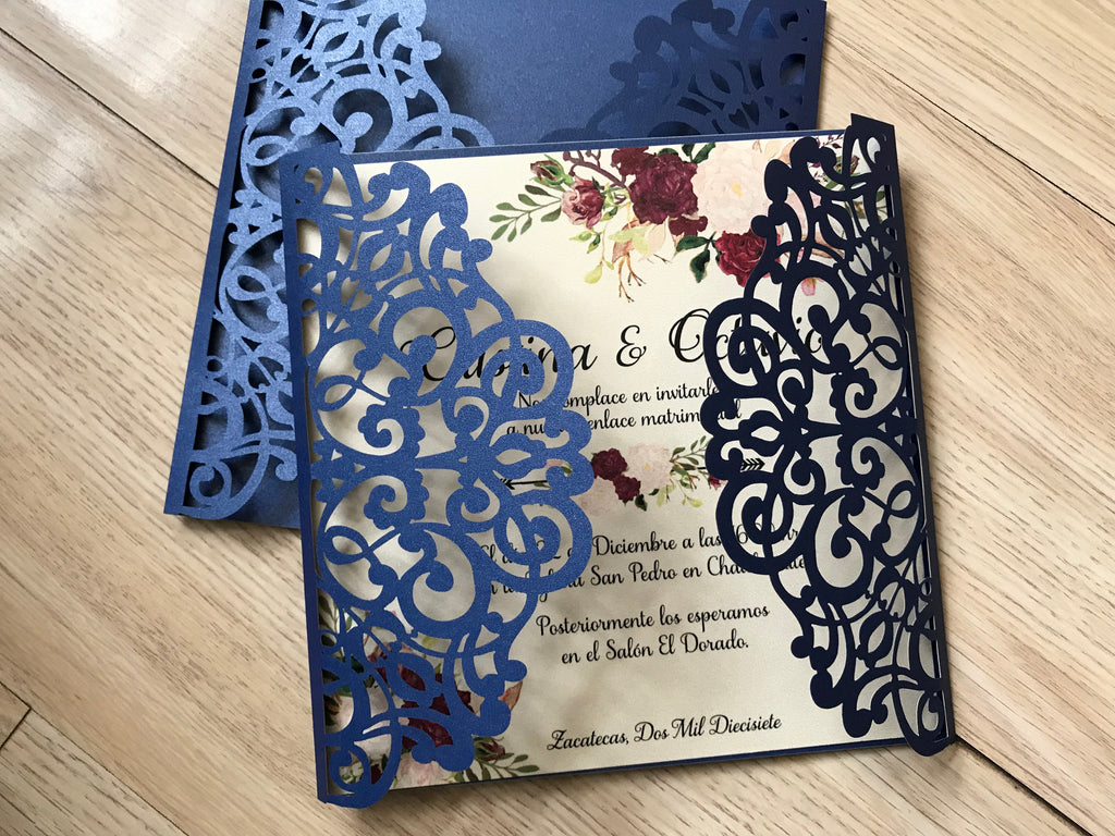 10pcs Pearl Navy Blue Laser Cut wedding invitations covers,Laser Cut Wedding Cards,laser cut Invitations Cards,Engagement invitations Card,Invite sleeve,Bridal Shower Party Invitations cards